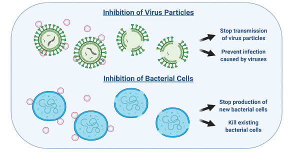 MCFA 和 MCMG 不僅能防止病毒顆粒感染細胞,還可以阻止病毒顆粒的進一步傳播。同樣地,MCFA 和 MCMG 對許多與畜牧疾病及人類食源性疾病相關的細菌性病原體也表現出抑制活性。